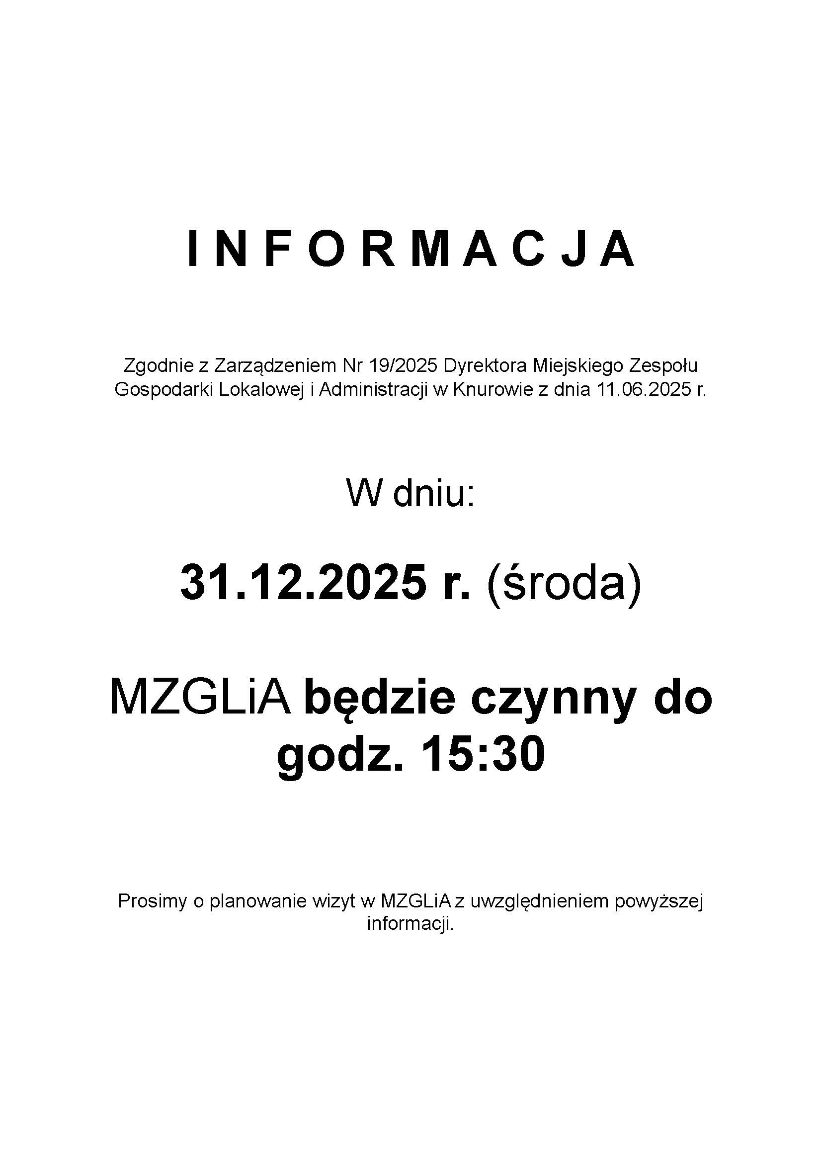 Informacja zgodznie z Zarządzeniem grudzień