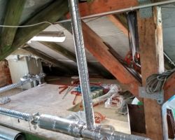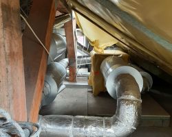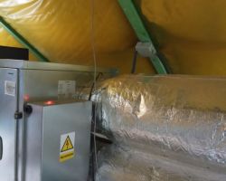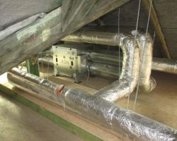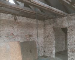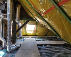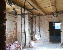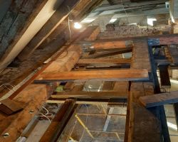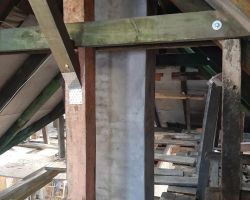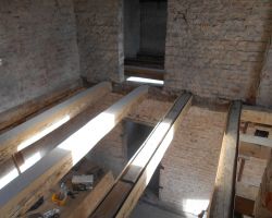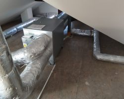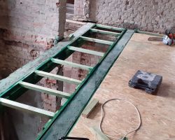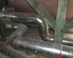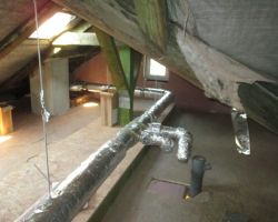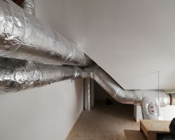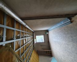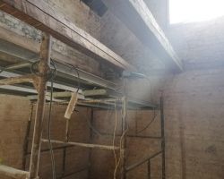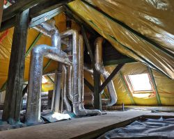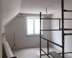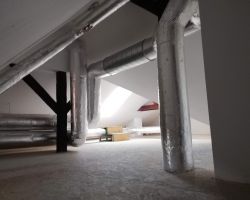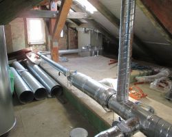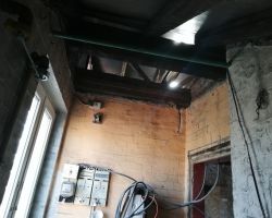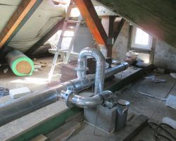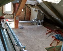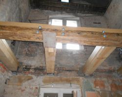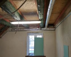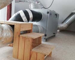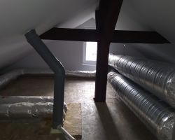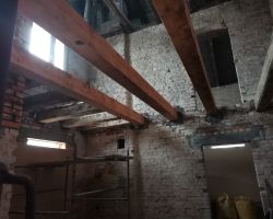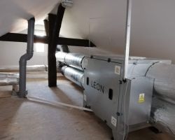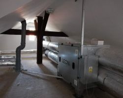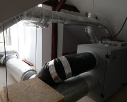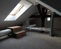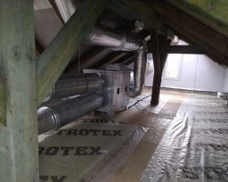 4. przeprowadzenie robót związanych z wykonaniem wentylacji mechanicznej z odzyskiem ciepła. W ramach robót uzupełniających przewiduje się wykonanie przebić w stropach, wykonanie wzmocnienia lub wymiany części elementów konstrukcji stropów celem montażu przewodów wentylacji mechanicznej, wykonanie obudów poziomych odcinków przewodów oraz przygotowanie pomieszczenia technicznego na poddaszu celem wykorzystania go na potrzeby wentylatorni, w tym: remont istniejących schodów drewnianych na poddasze, wydzielenia pomieszczenia od pozostałych pomieszczeń poddasza ścianami, wykonanie podestów technicznych,