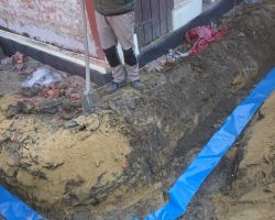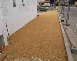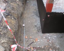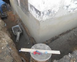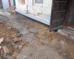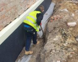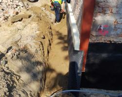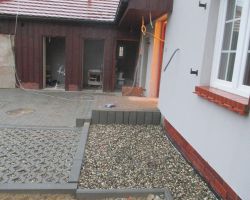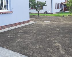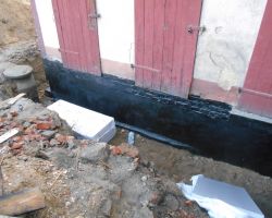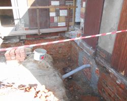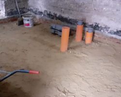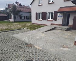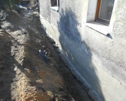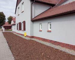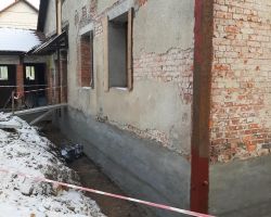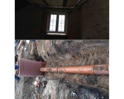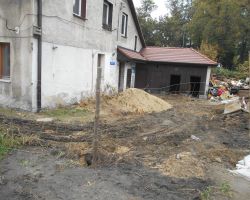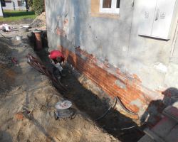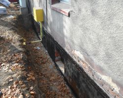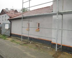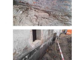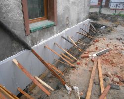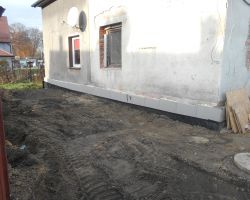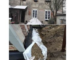 1. wykonania osuszenia ścian fundamentowych wraz z częścią podpiwniczoną oraz parterem, poprzez zastosowanie iniekcji chemicznej, wykonanie izolacji przeciwwodnej, drenażu opaskowego wokół budynku, wykonanie izolacji termicznej ścian fundamentowych, posadzek na gruncie piwnicy oraz parteru, wykonanie izolacji termicznej nad częścią podpiwniczoną oraz wykonanie odtworzenia poszczególnych posadzek. W ramach robót uzupełniających przewiduje się rozbiórkę elementów nawierzchni wokół budynku, wraz z wywozem gruzu, wykopy wokół budynku, rozbiórki całości posadzek na gruncie parteru oraz piwnic, rozbiórki posadzek nad częścią podpiwniczoną parteru oraz odbicie zawilgoconych tynków. Po wykonanych robotach teren zostanie przywrócony do stanu pierwotnego poprzez odtworzenie dojścia do budynku (z uwzględnieniem opaski drenażowej wokół budynku),