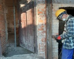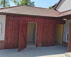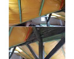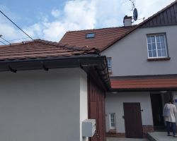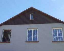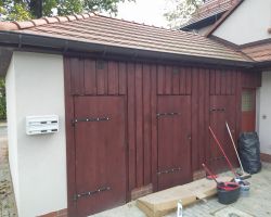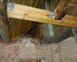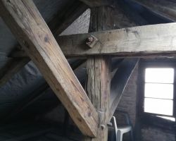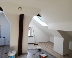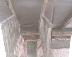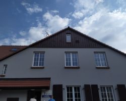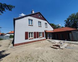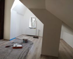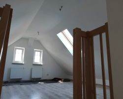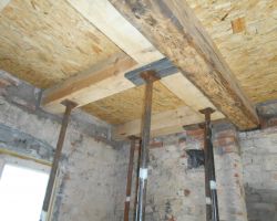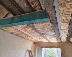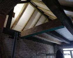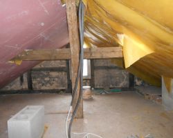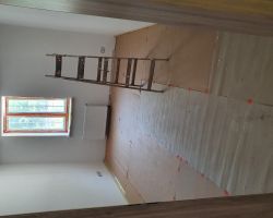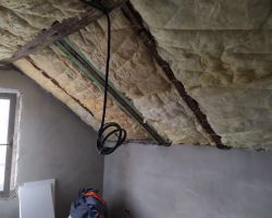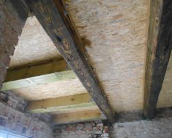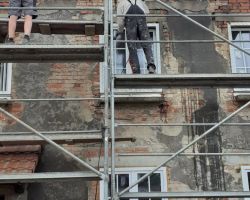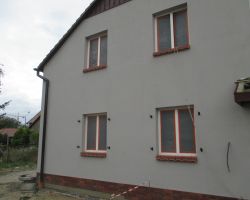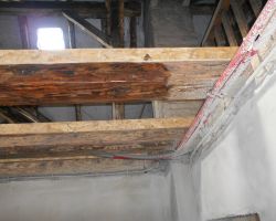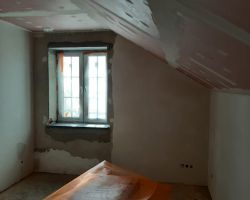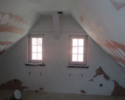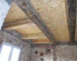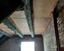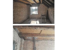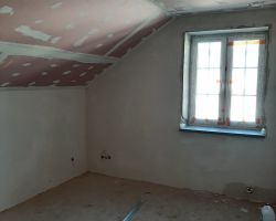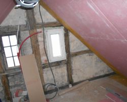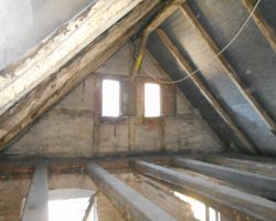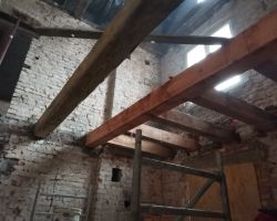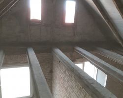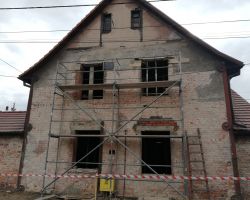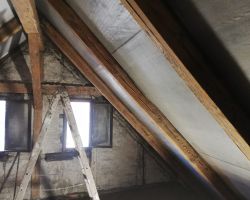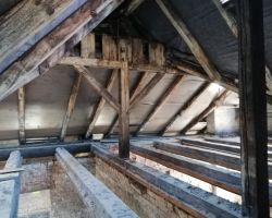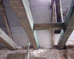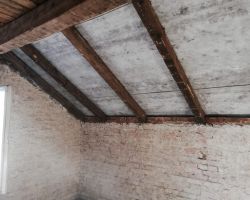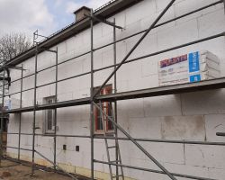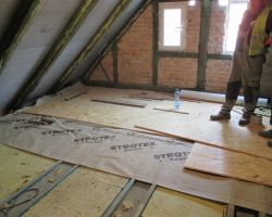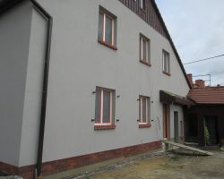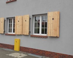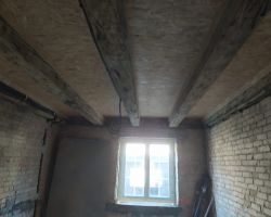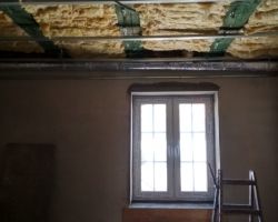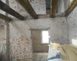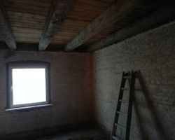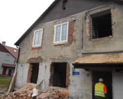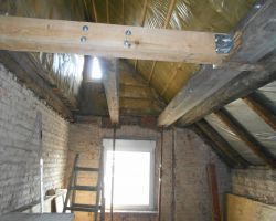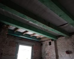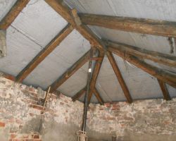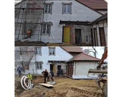 2. wykonania robót związanych z realizacją poszczególnych warstw izolacji termicznej ścian zewnętrznych, połaci dachowej, stropu nad kondygnacją drugą (piętrem), montażem stolarki okiennej odpowiadającej obecnie obowiązującym normom, odtworzenie zewnętrznych parapetów, wzoru drzwi zewnętrznych i drewnianych drzwi do komórek, założenie szprosów w oknach wewnątrz szyby oraz na parterze okiennic drewnianych. W ramach robót uzupełniających przewiduje się wzmocnienie lub wymianę części elementów konstrukcyjnych stropu oraz więźby dachowej, rozbiórka posadzek oraz podsufitek drewnianych, celem montażu izolacyjnych warstw oraz odtworzenie sufitów i podłóg na poddaszu,