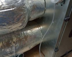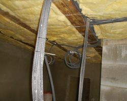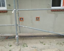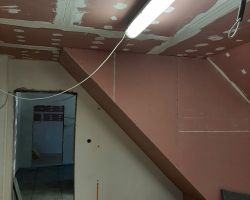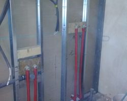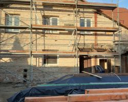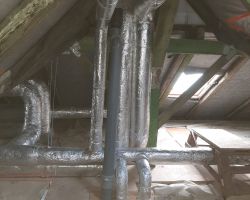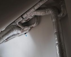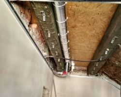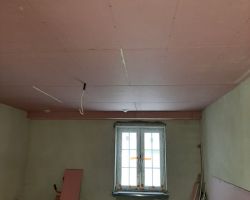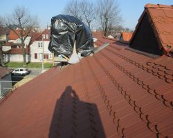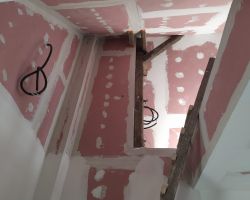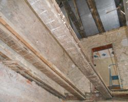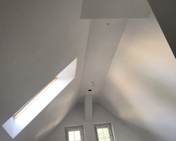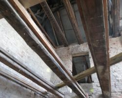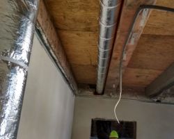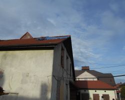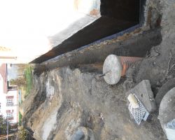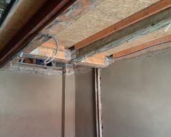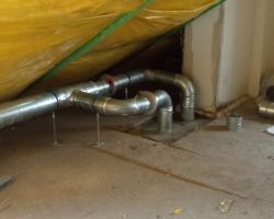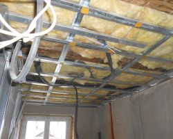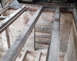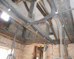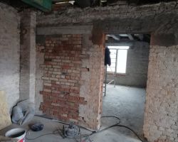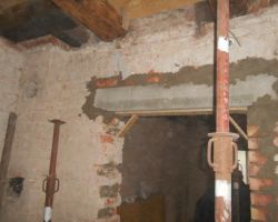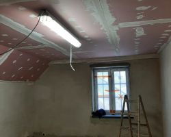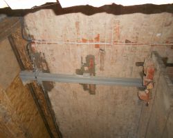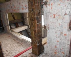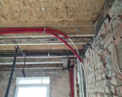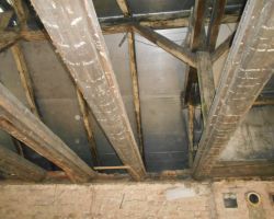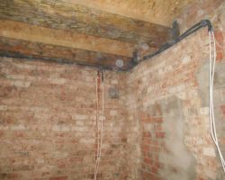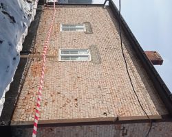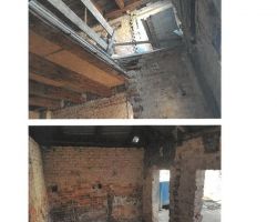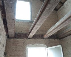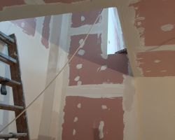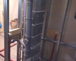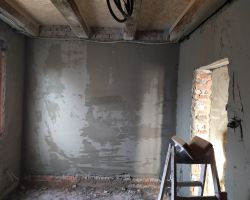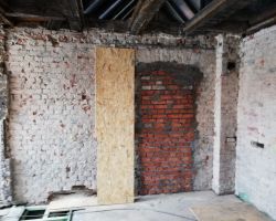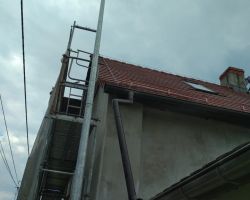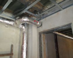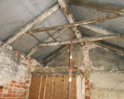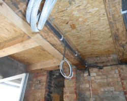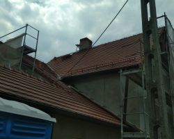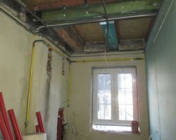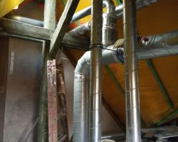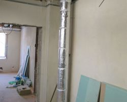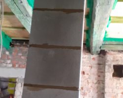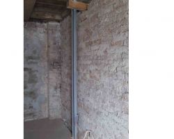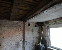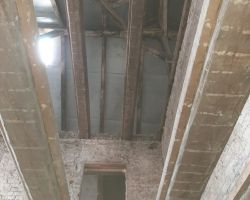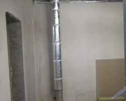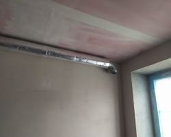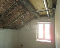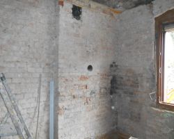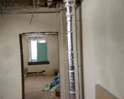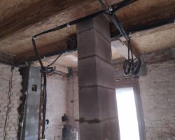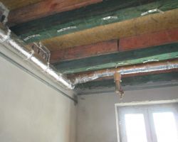 3. wykonania robót związanych z budową przewodów wentylacyjnych oraz pionów spalinowych. W ramach robót uzupełniających przewiduje się wykonanie przebić w stropach wraz z ewentualnymi zmianami części konstrukcji stropów oraz części konstrukcji dachu, rozbiórkę nieszczelnych istniejących pionów wentylacyjnych oraz dymowych i zaślepienie istniejących, nieczynnych pionów. Z uwagi na istniejącą konstrukcję sufitów z maty trzcinowej z obrzutką należy odtworzyć sufity w tej części budynku (nad parterem) sufity według obwiązujących warunków,