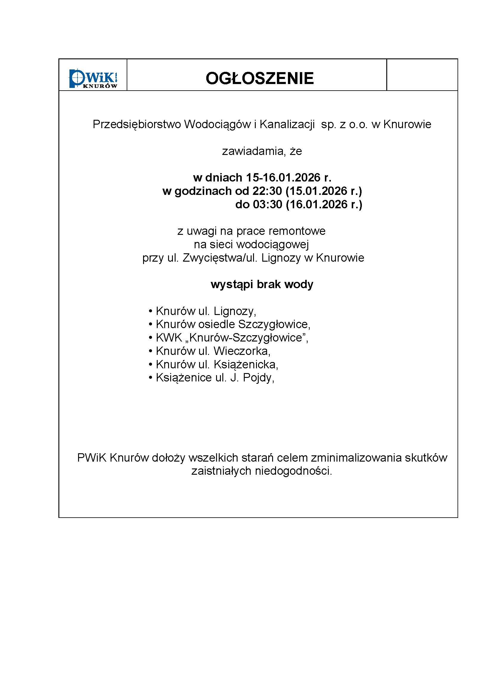 Brak wody osiedle Szczygłowice